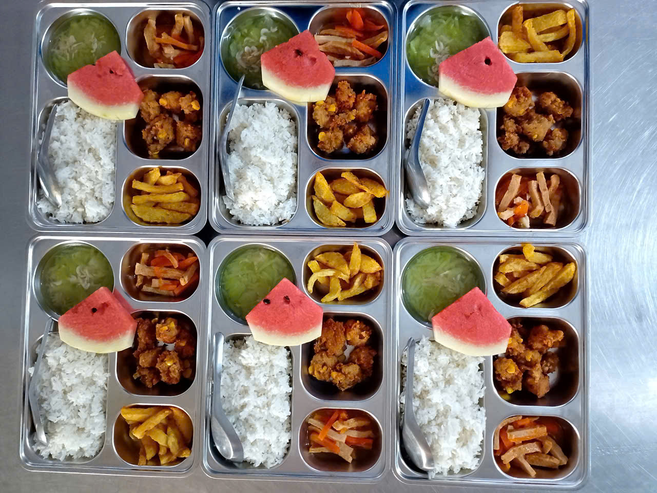 🍉 Dưa hấu tráng miệng ngọt mát, giúp các em giải nhiệt sau bữa ăn.